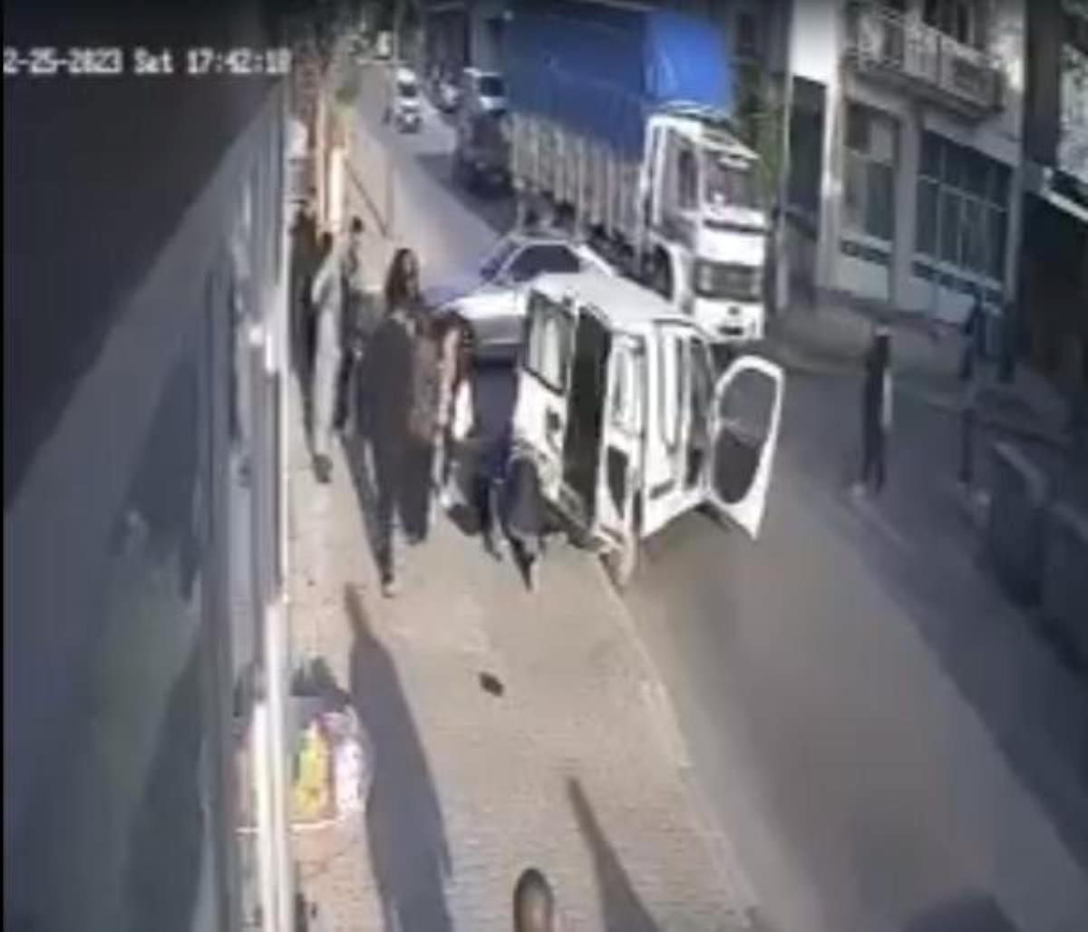 5. ARABAYLA ÇARPIŞAN HAFİF TİCARİ ARACIN YAYALARIN ORTASINA DALMASI KAMERADA: 4 YARALI