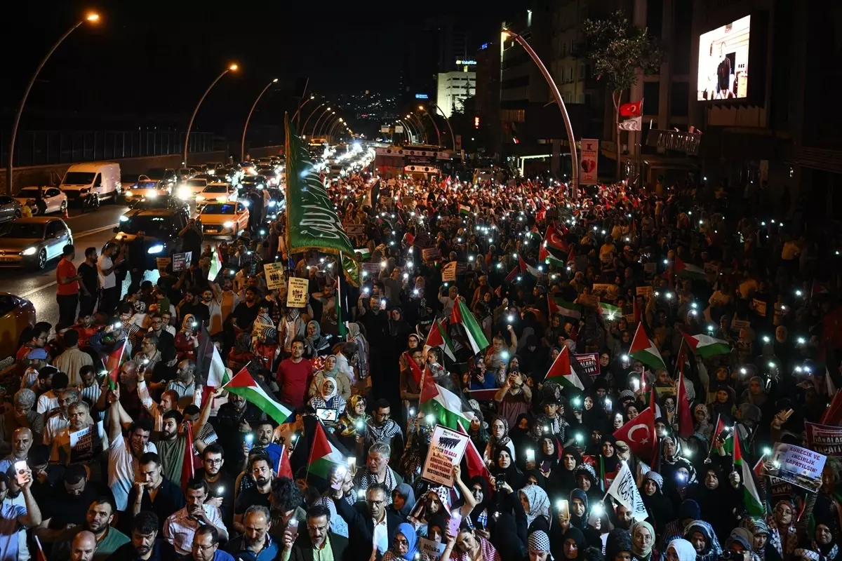 ANFİDAP’ın daveti üzerine, çok sayıda kişi Kocatepe Mescidi önünde toplandı. Küme, akşam namazının akabinde “soykırıma karşı global vicdan” ve “engel tanımayan çabayı destekliyoruz” pankartlarıyla Mısır’ın Ankara Büyükelçiliği’ne yürüyüşe geçti.